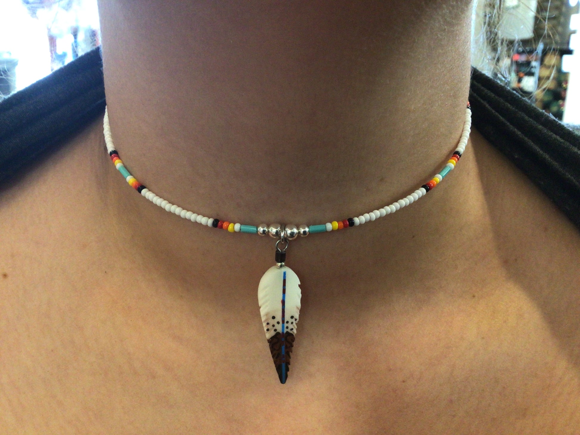 Beaded Feather Choker