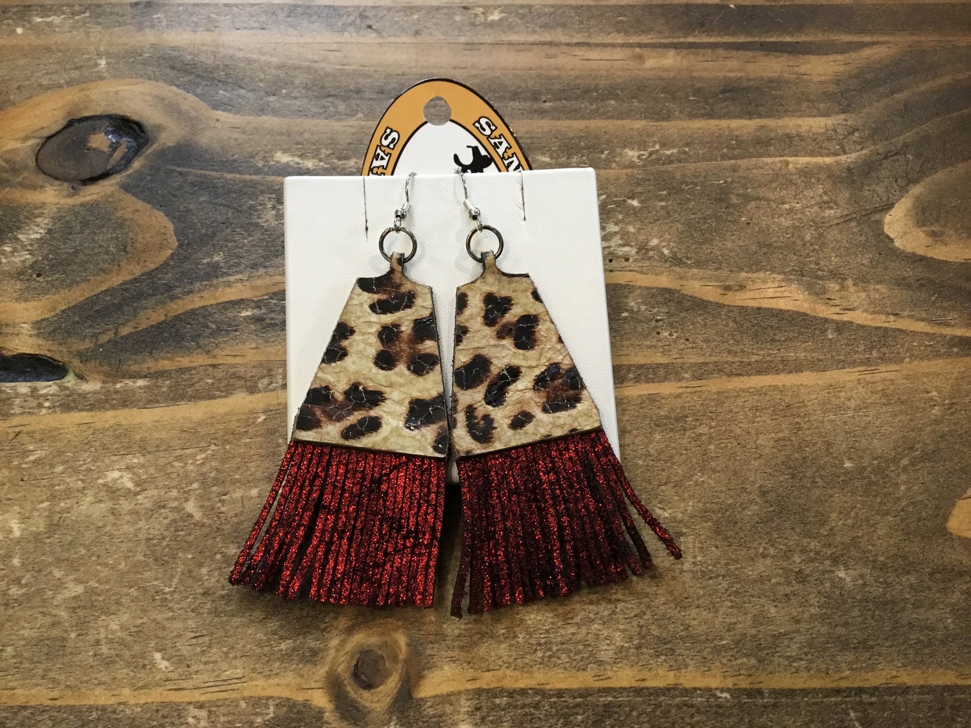 San Saba Equine Leather Leopard and Fringe Earring